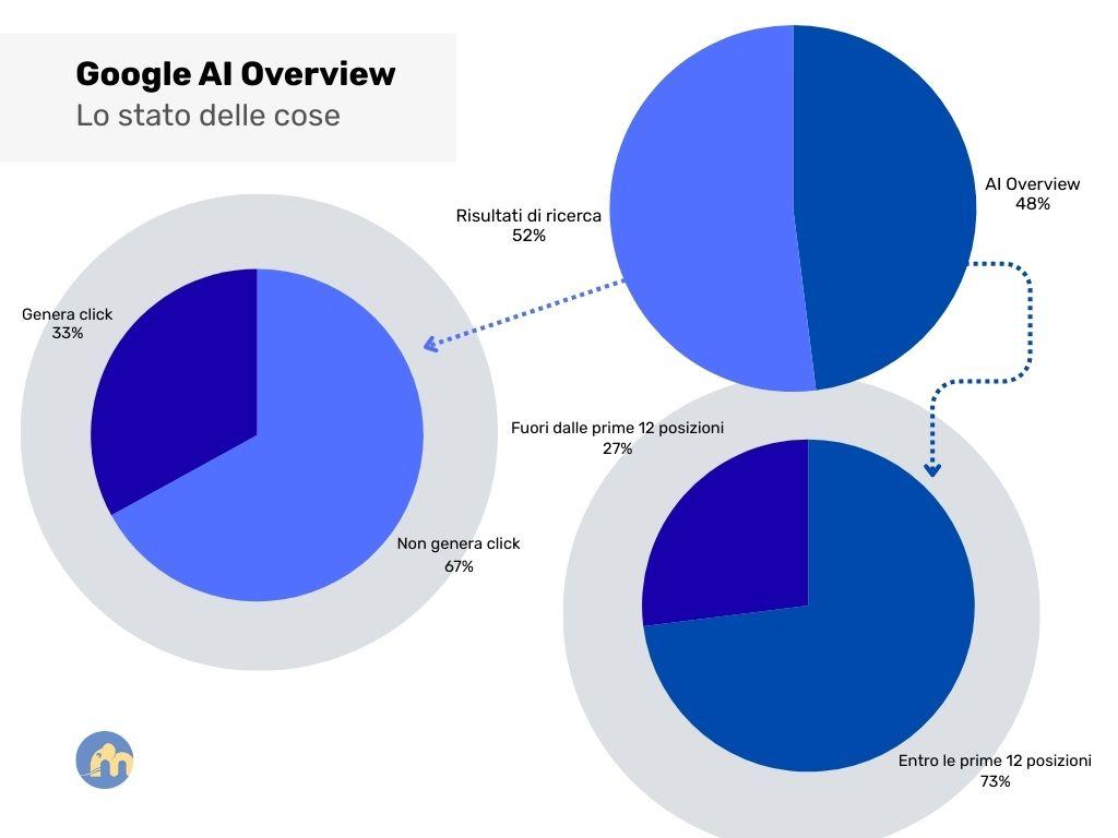 - Il 67% delle ricerche non porta più clic verso i siti web: l’utente trova già la risposta nell’overview e non sente il bisogno di approfondire.